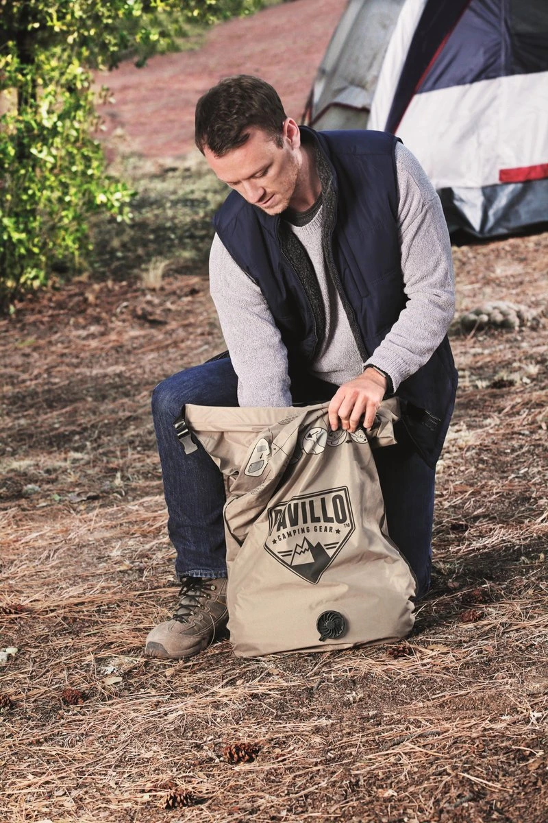 Met het Roll & Relax luchtbed wordt een speciale 3-in-1 opbergtas bijgeleverd. Je kunt de tas ten eerste gebruiken als opberg- of reistas wanneer je on the go bent. Daarnaast kun je hem ook opblazen met lucht en als kussen gebruiken wanneer je gaat slapen of gewoon even uit wil rusten. Tot slot dient te opbergtas van het Bestway luchtbed ook als pomp. Door de zak met lucht te vullen en hem vervolgens aan te sluiten op het ventiel van het opblaasmatras laat je hem gemakkelijk vol lopen met lucht. Dankzij deze unieke AirCinch techniek heb je slechts 50 seconden en 6 hand compressies nodig om het luchtbed volledig op te blazen. Zo hoef je geen zware pomp meer mee te sleuren wanneer je gaat kamperen.