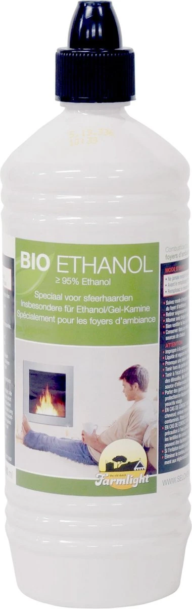 Een fles met brandbare bio-ethanol. Deze vloeistof wordt gebruikt als brandstof voor sfeerhaarden en sfeerlichtjes.