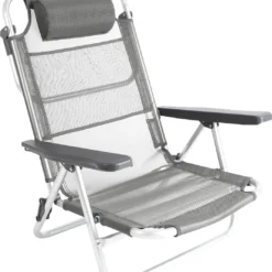 Het frame is gemaakt van lichtgewicht aluminium en de bekleding van textileen. Daarnaast is deze strandstoel voorzien van comfortabele armleuningen, stabilisatoren, een vakje om tijdschriften in op te bergen. Tot slot is de strandstoel voorzien van een hoofdkussen dat naar achteren weg te klappen is. Zo kan je zelf bepalen of je gebruik wil maken van het kussen.