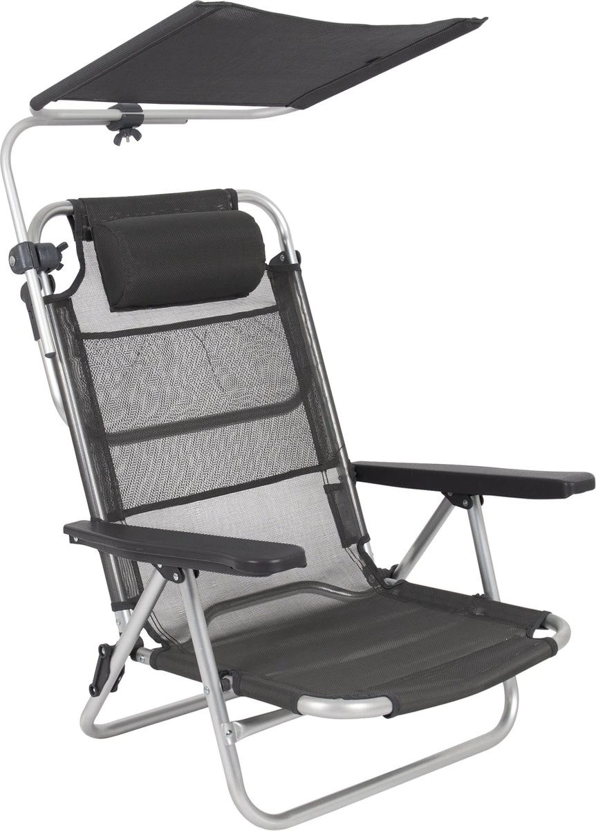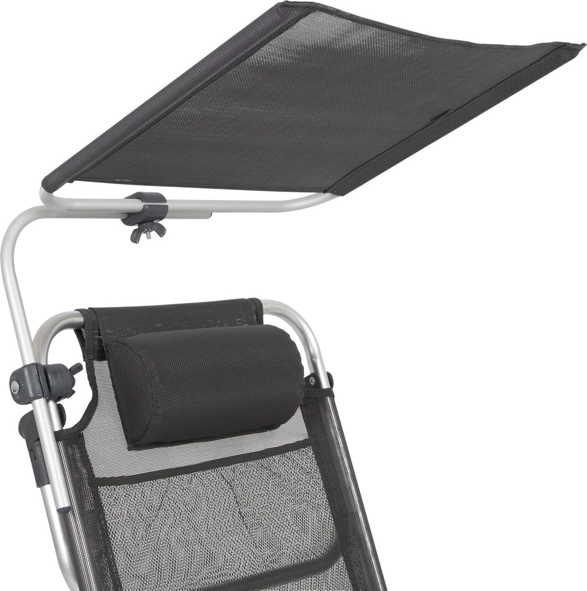 Een stijlvol zonnescherm. Deze is eenvoudig te bevestigen aan het frame van de meeste kampeerstoelen en stretchers. Daarnaast is het scherm in iedere gewenste richting te draaien.