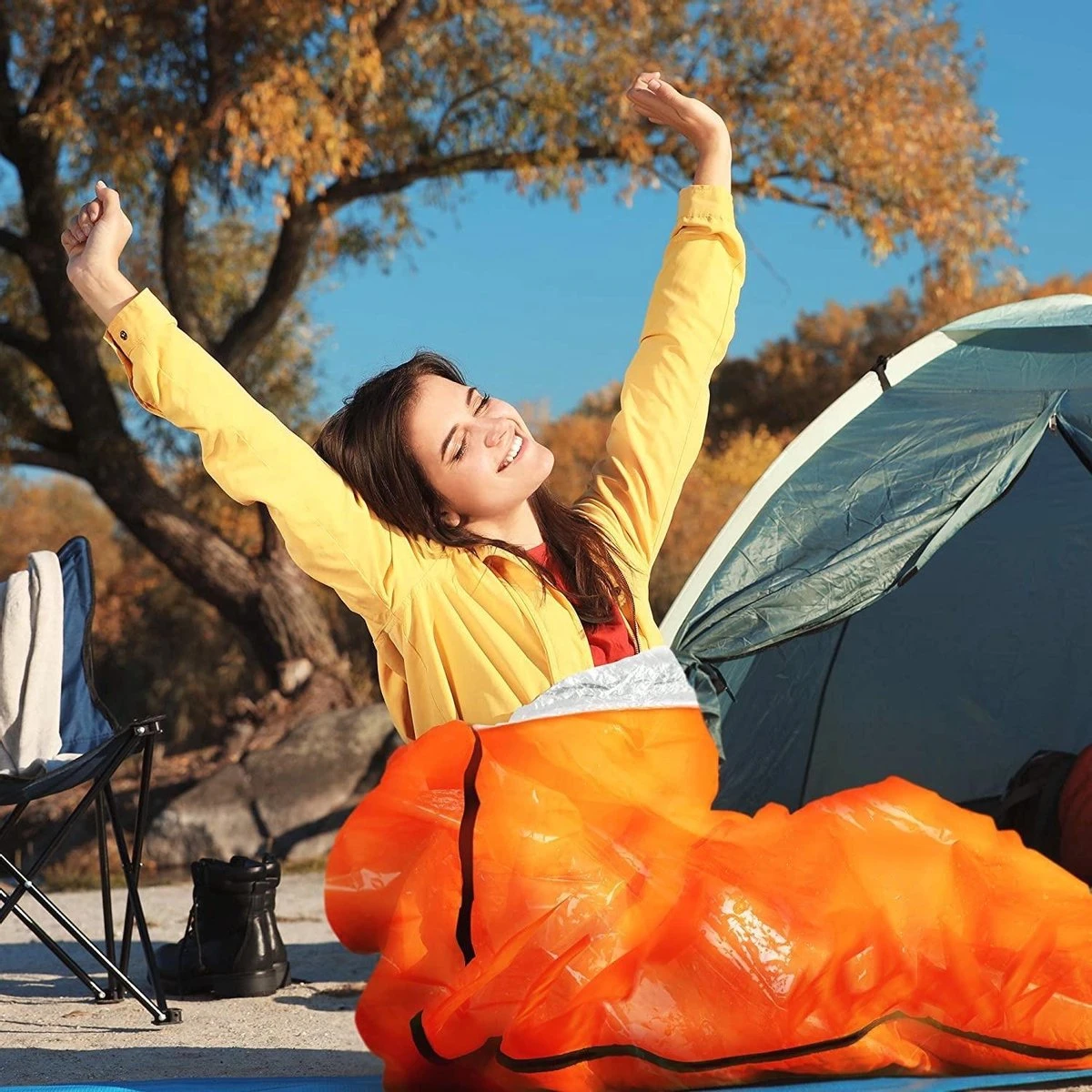 Deze noodslaapzak is essentieel tijdens een noodgeval, kamperen of andere avonturen. De slaapzak is gevoerd met speciale warmte-reflecterende materialen en thermische isolatie, waardoor je goed warm blijft. De felle kleur kan gebruikt worden als een signaalapparaat. De slaapzak kan compact opgevouwen worden waardoor het ideaal en eenvoudig is om mee te nemen.