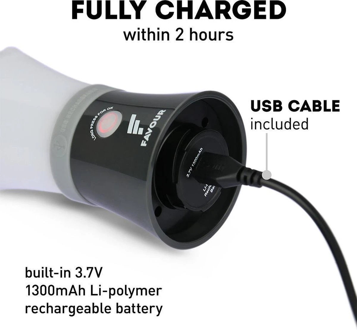 Favour L0717 Camping Lamp Oplaadbaar LED, 200 Lumen, IPX7 Waterdicht, Drijvend, Schokbestendig, Draagbare Kampeerlamp, Tentlamp, Vislamp, Geïntegreerde Oplaadbare Batterij