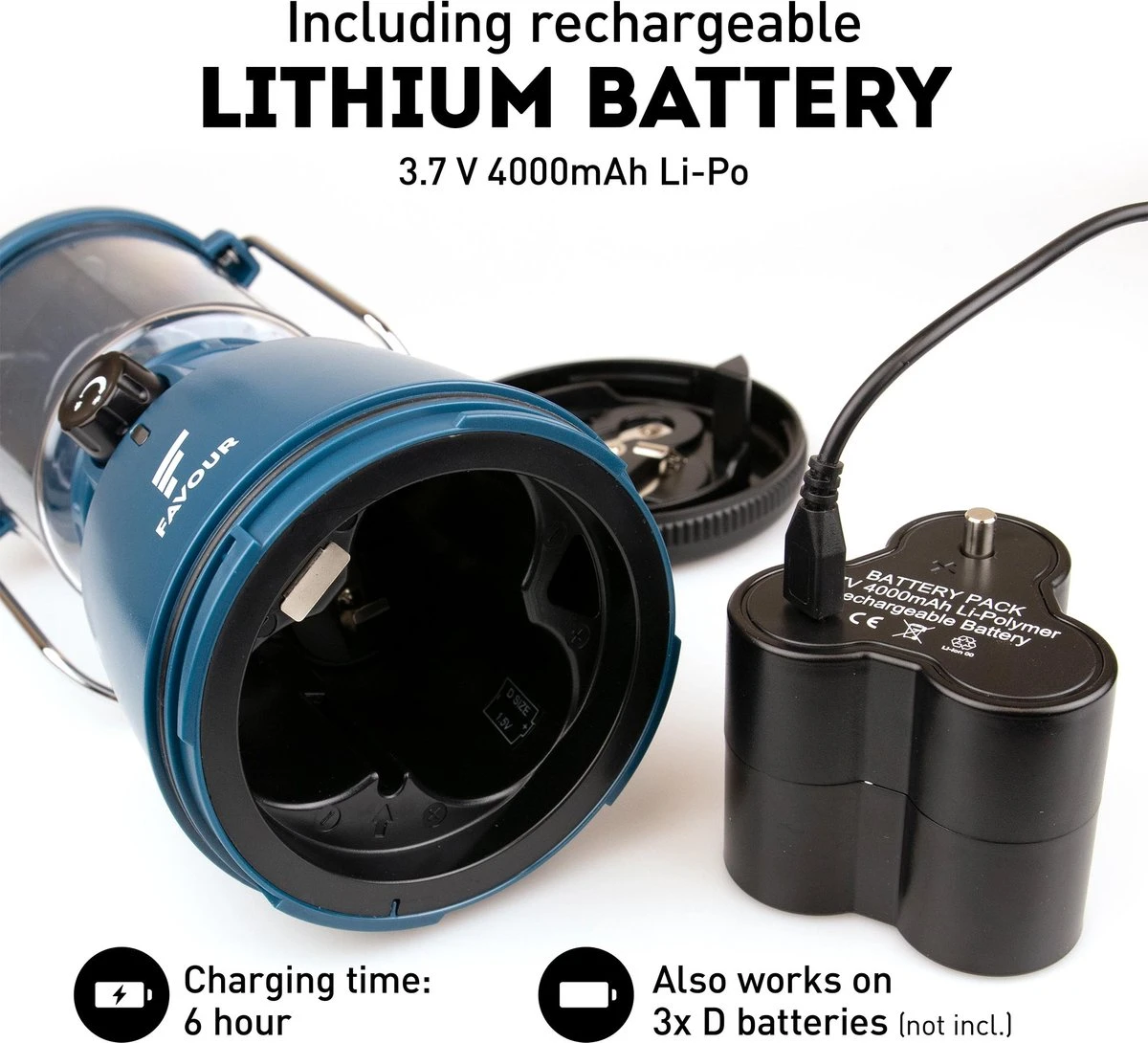 Op de voorkant vind je een draaiknop waarmee je het licht dimt. Het aantal lumen loopt op van 14 tot 320. Ook zit er een kaarslichtmodus op die, je raadt het al, het sfeervolle licht van een kaars nabootst. In de laagste lichtstand gaat de batterij 128 uur mee. Daarna laad je hem op via micro USB. Let op, de bedieningsknop heeft geen “einde” en blijft ook doordraaien als de maximale of minimale lichtstand is bereikt.
