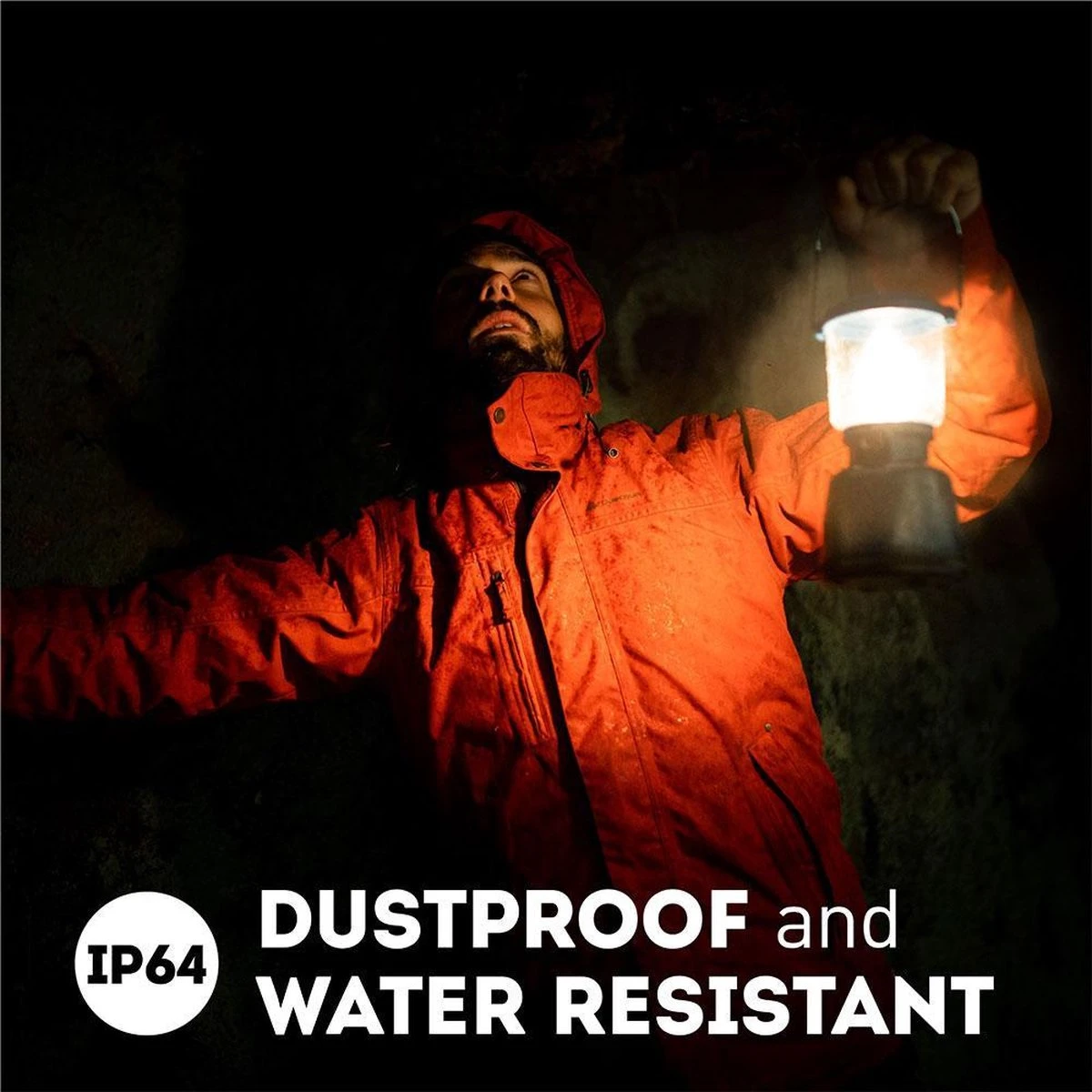 Een aantal andere mooie features van de lantaarn zijn de drop impact van 1 meter waardoor deze lantaarn tegen een stootje kan en de IP64 rating, dat wil zeggen dat hij waterbestendig is. Ook zit er een zogenaamde ‘’long press’’ functie op. Wat wil zeggen dat je de knop langer in moet drukken voordat hij aan gaat. Handig als je de lamp in je rugzak vervoert. Als er spullen tegenaan komen gaat de lantaarn niet zomaar aan.