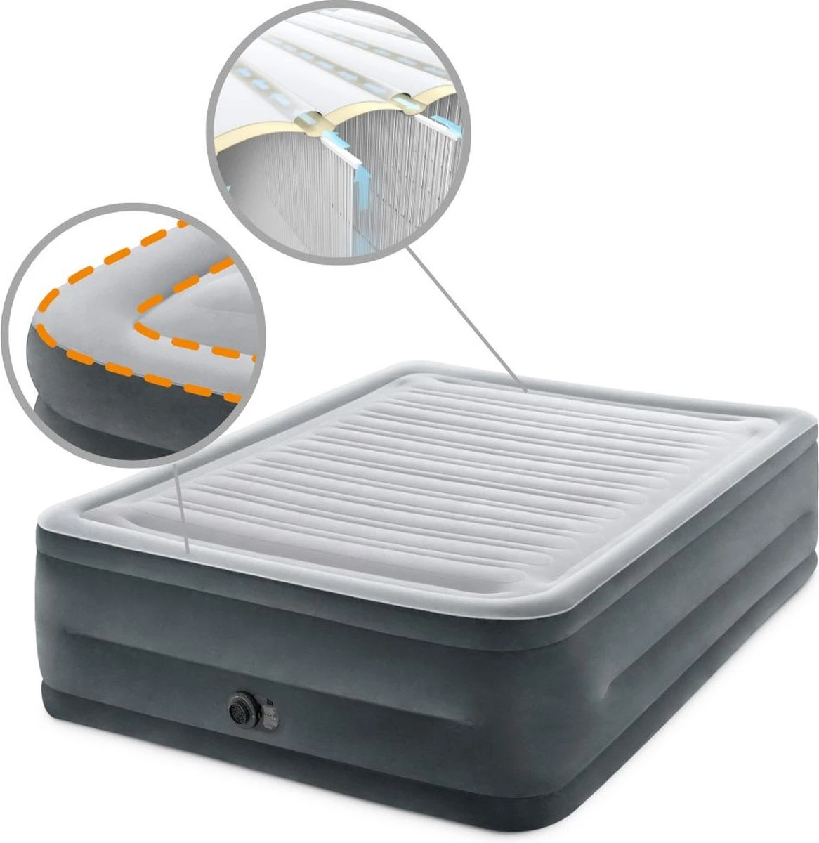 Intex Luchtbed – 2-Persoons – 152 X 203 X 33 Cm – Grijs – Met Ingebouwde Pomp, Hoeslaken Wit En Reparatieset