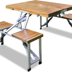 Praktische picknicktafel met 4 zitplaatsen, parasolhouder en kofferfunctie!